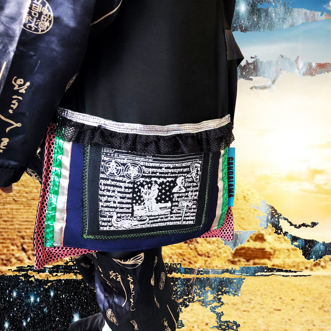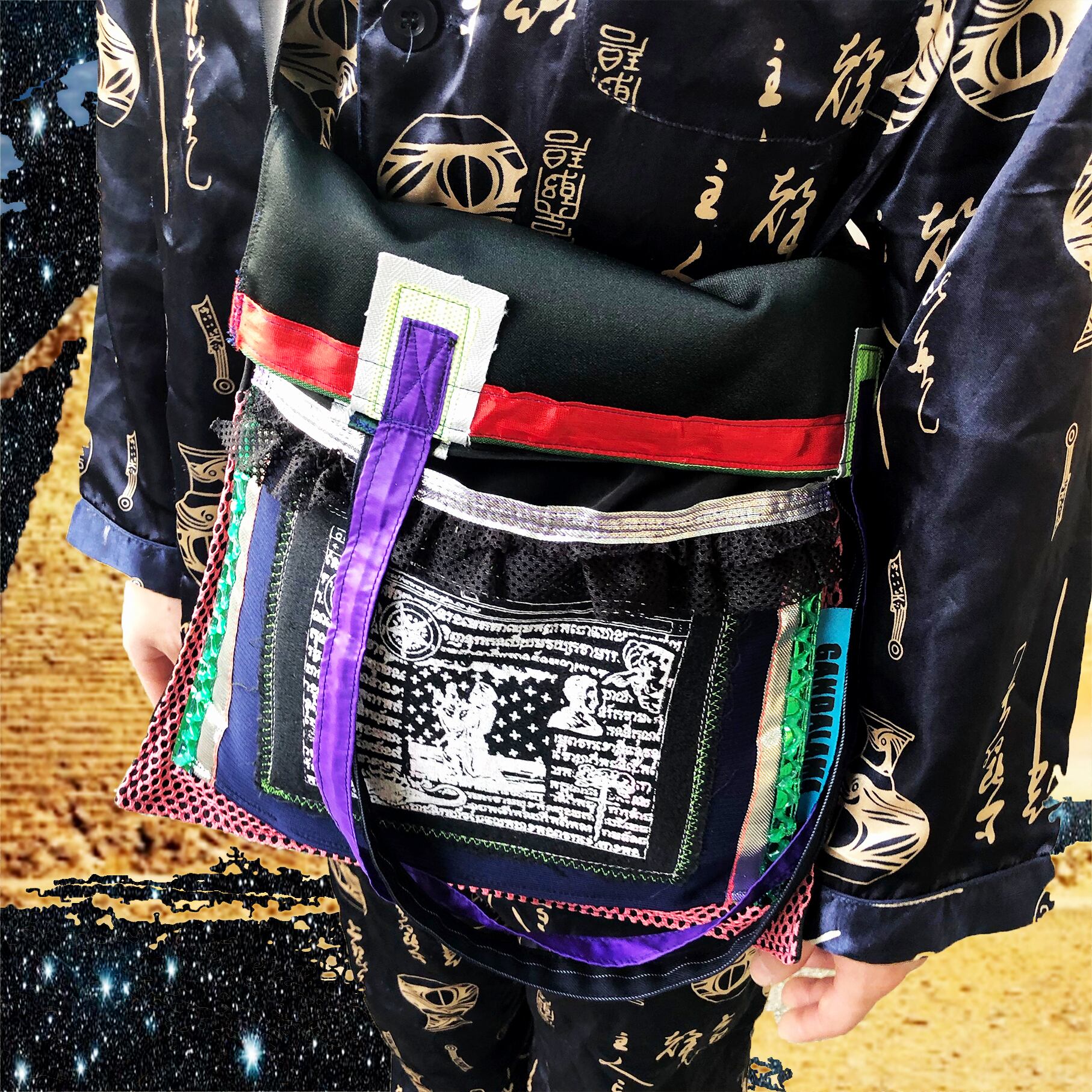 オリジナルの神様プリントに旅先で集めた素材を合わせた世界に1つの縁起物。