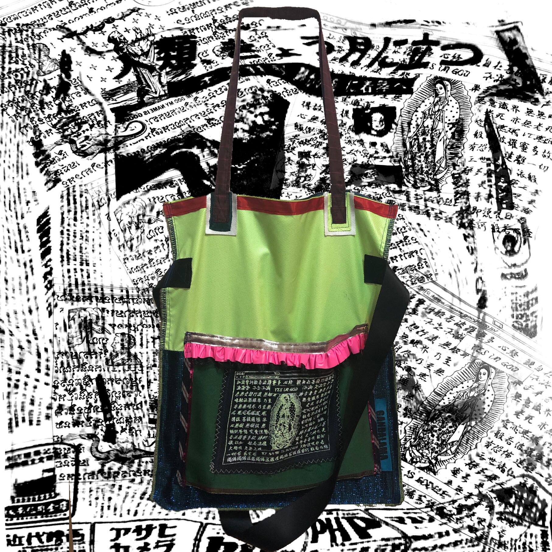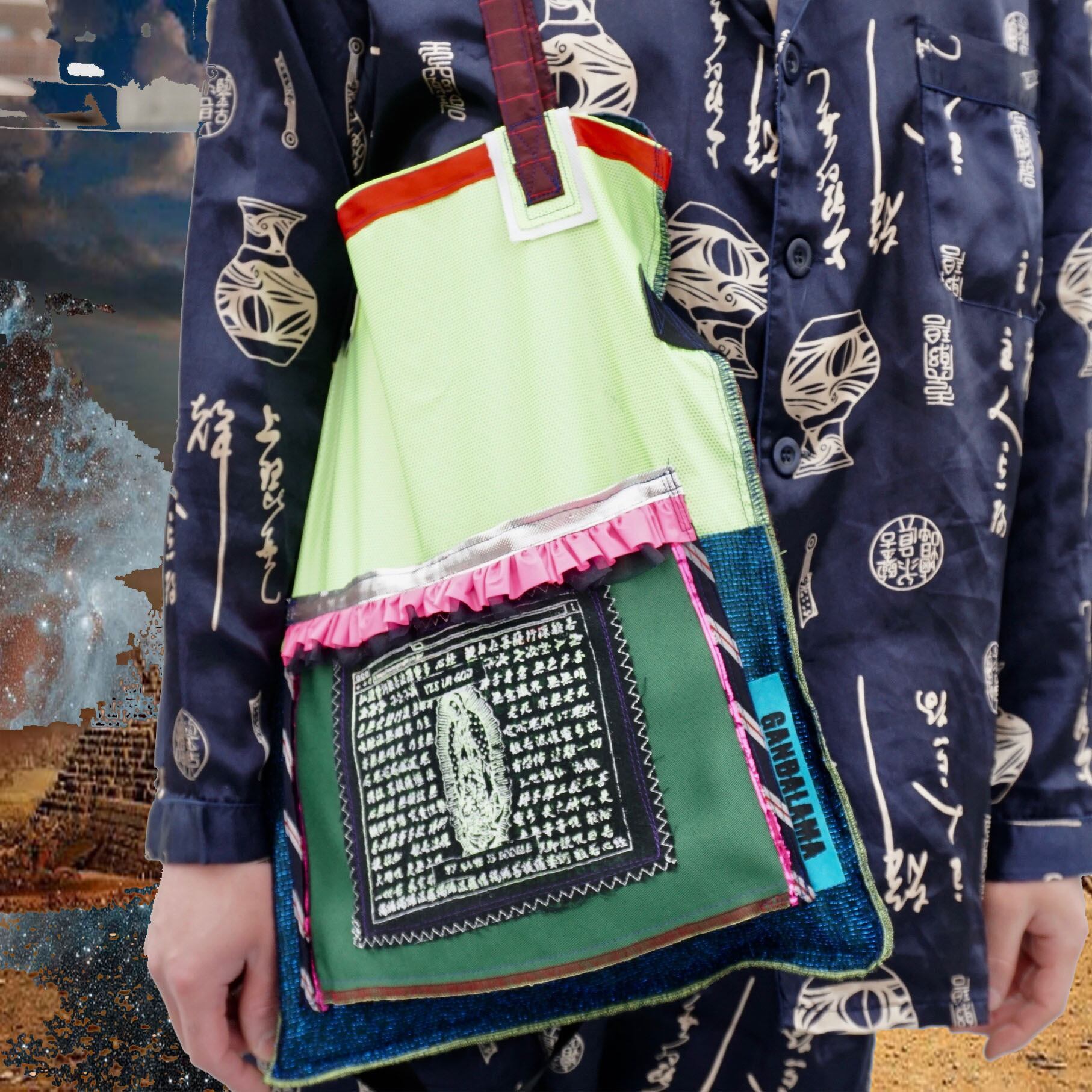 オリジナルの神様プリントに旅先で集めた素材を合わせた世界に1つの縁起物。