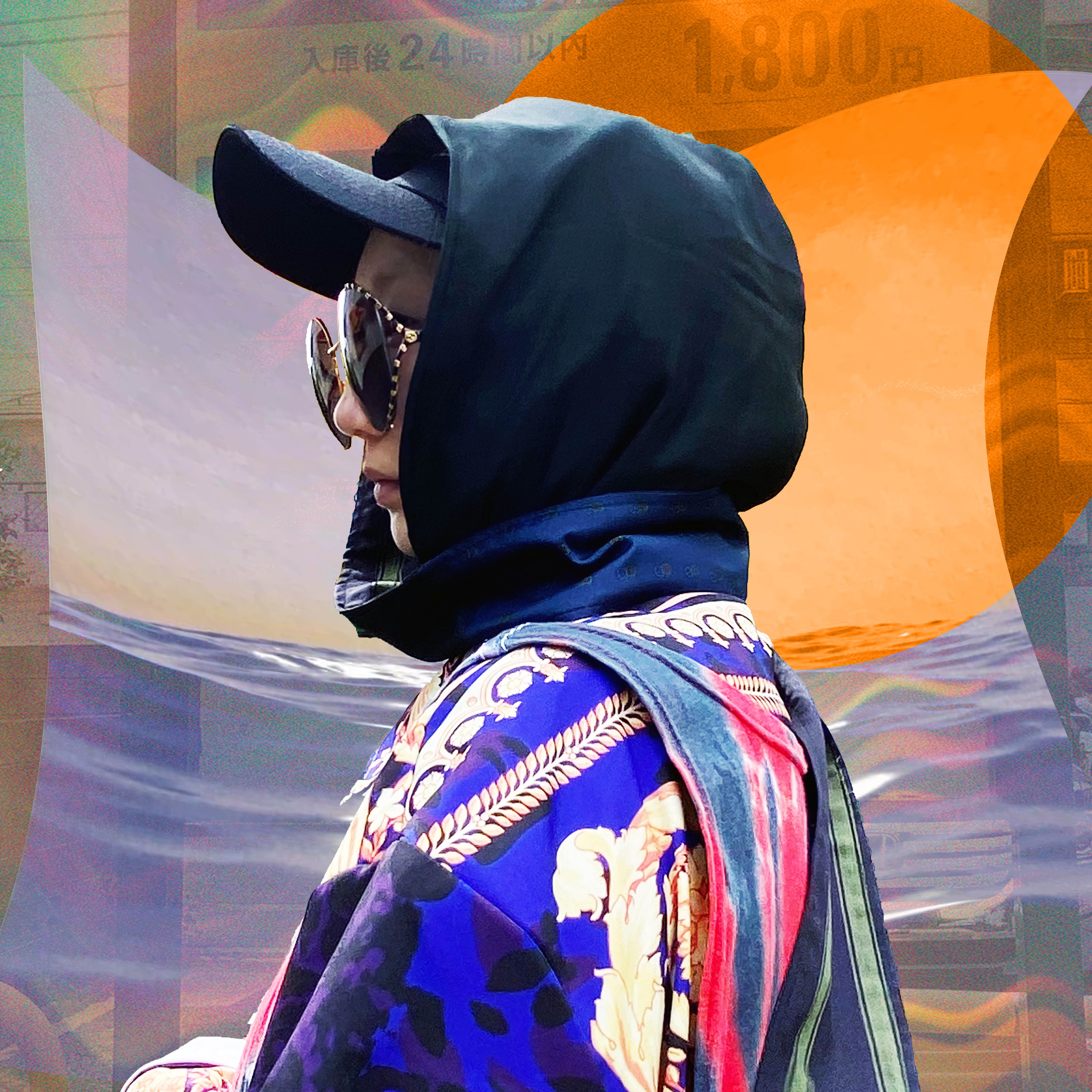 フードにストールが合体したような、ハイブリット付けフード。